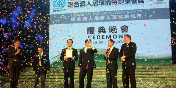 2010年7月5日晚,联合国人居署向武进颁发联合国人居环境特别荣誉奖,并宣布武进区被联合国人居署及世界城市委员会列为中国首个“人居实验城市”。 受联合国人居署执行主任特别助理、高级政策及战略规划顾问尼可拉斯尤博士的委托,联合国人居署驻华首席代表张振山;环境协会执行主席、前联合国环境署欧洲代理主席约翰•卡斯特森;联合国工发组织国际中心主任鲁道夫•柏拉图;联合国生态城市项目主席简•迪克托斯等高层官员亲临武进颁奖。