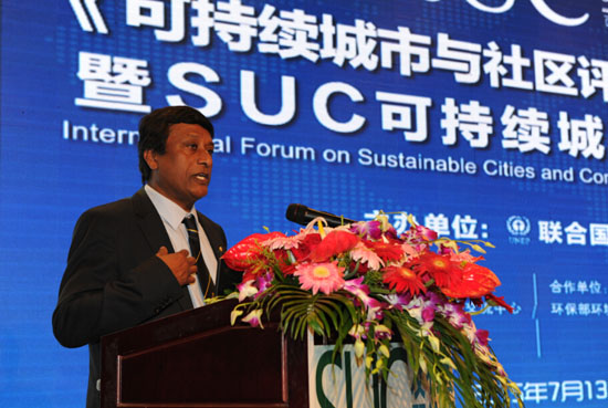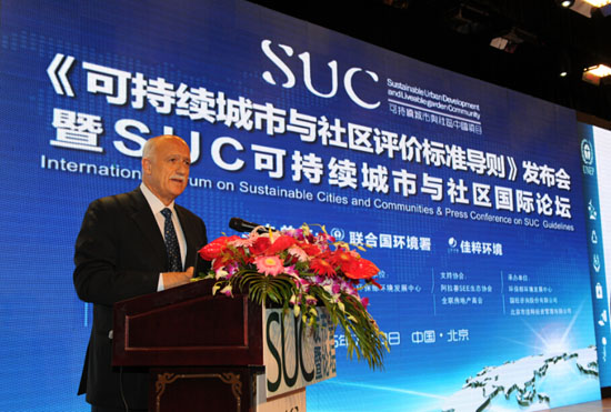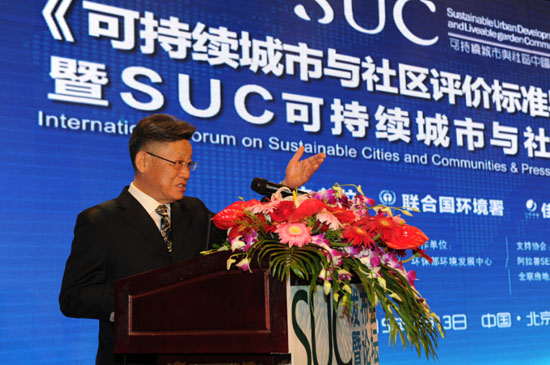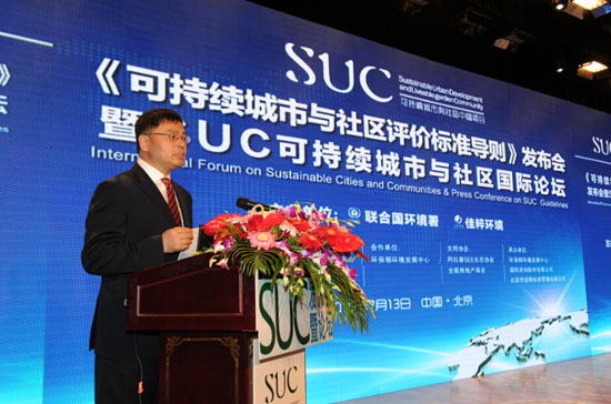 中国各相关部委、联合国系统主要机构、13个发展中国家代表、中国城市与社区代表、各NGO组织与媒体共300多人隆重出席。联合国环境署可持续发展部司长阿拉伯·浩布拉、国家商务部前副部长、中国国际经济交流中心副理事长魏建国,环保部环境发展中心总工程师董旭辉,全国工商联房地产商会创会会长聂梅生,联合国人居署城市规划司高级官员卡玛尔·布赫迈德,联合国环境署驻华代表张世钢、万科集团主席王石等十余位嘉宾发表精彩演讲,充分肯定SUC可持续城市与项目及其标准对中国乃至全球发展中国家可持续发展起到的重要作用。