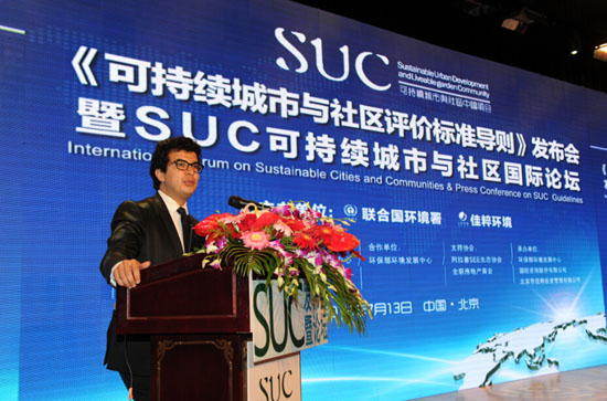 中国网/中国发展门户网2015年7月13日讯 (记者 焦梦)今天,联合国环境规划署(UNEP)与佳粹(中国)环境发展促进中心在京共同发布《可持续城市与社区评价标准导则》(以下简称“SUC导则”),并举办“可持续城市与社区国际论坛”,全面介绍中国可持续城市和宜居社区项目(Sustainable Urban Development and Livable Garden Community)(以下简称“SUC项目”)。记者在会上获悉,中国将建首个可持续城市和社区样板。