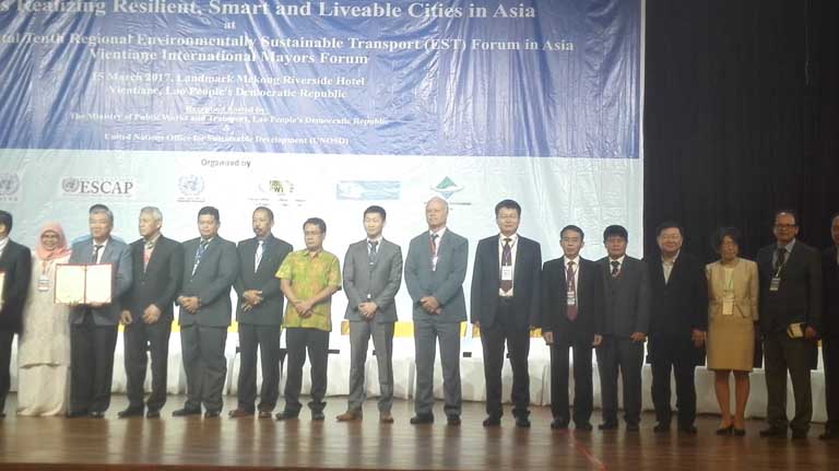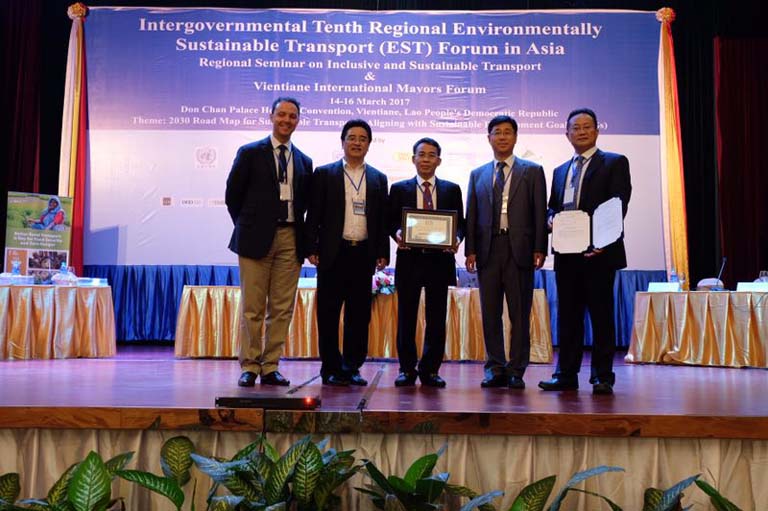 2017年3月14-16日,联合国万象国际市长论坛暨亚洲区域环保可持续交通论坛在老挝首都万象举办,来自联合国区域发展中心、联合国可持续发展办公厅、联合国亚太经社理事会、老挝中央政府、日本环境部等主办单位及联合国人居署、日本环境部、世界卫生组织、世界银行、城市联盟等国际组织与亚太区近20个国家的400多名嘉宾出席。SUC项目中国办公室、中国湛江市、延安市、中国国际经济交流中心及来自广东、湖南等城市相关企业出席会议。 本届论坛围绕地方政府如何实施联合国2030年可持续发展议程第十一项目标(可持续城市与社区)的实践与经验展开交流,旨在倡导打造“包容、安全、弹性的可持续城市与社区”。受联合国区域发展中心及联合国可持续发展办公厅邀请,SUC项目办公室组织中国城市代表团参会,并于论坛发表演讲,全面介绍“可持续城市与社区示范项目”及其成果,会上正式宣布中国湛江市成为联合国环境署“全球资源高效城市”试点,并以此为基础,正式成为SUC可持续城市全球试点,列入中国首批“SUC可持续发展先锋城市”示范创建。湛江市将与联合国环境署及SUC项目管理中心、中国国际经济交流中心等合作,展开城市可持续发展各项高标准、国际化创建工作。