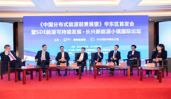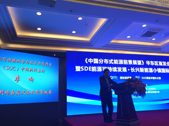 10月31日,浙江长兴,由国际能源署和SUC项目办公室联合举办的《中国分布式能源前景展望》华东区发布会暨SDE能源可持续发展论坛•长兴新能源小镇论坛隆重召开,来自国际能源署、国家能源局、SUC项目办公室、中国能源研究会、浙江省政府、湖州市、长兴县及联合国环境署、行业界、企业界及媒体界代表300多人出席会议,共同见证国际能源署与中国国家能源局三年合作框架下的首个成果文件---《中国分布式能源前景展望》及“SUC可持续能源小镇计划”的隆重发布。与会专家对《中国分布式能源前景展望》报告进行点评,共同探讨中国分布式能源现状、政策、技术、商业模式,以及如何在SUC项目框架下合力共建SUC可持续能源小镇社区示范。本次论坛由浙江省发改委、浙江省经信委的作为支持单位,长兴县人民政府、长兴县新能源(汽车)行业协会联合承办。