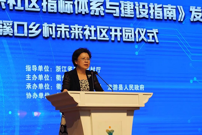 浙江省农业厅刘嫔珺副厅长对衢州市的乡村未来社区建设表示祝贺与支持,认为衢州在理念、实践上都走在了前列,是对新时代美丽乡村建设进行了未来版、升级版的有益探索。