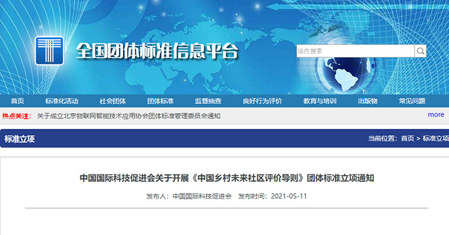 2021年6月中旬,随着国家标准委全国团体标准信息平台公示程序结束,由中国国际科技促进会正式批准立项的《中国乡村未来社区评价导则》团体标准起草编制工作正式启动。这将是首个“乡村未来社区”建设的全国性团体标准。