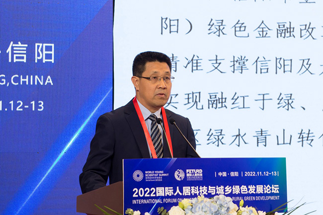 信阳市人民政府市长陈志伟、河南省科学技术协会主席吕国范、中国国际科技促进会会长段洣毅分别致辞。